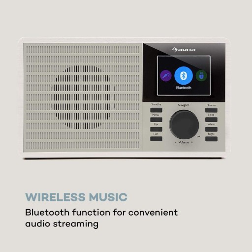 Radio DAB+/FM DR-160 BT marki auna odbiera cyfrowe stacje DAB+ oraz analogowe stacje UKF. Praktyczne wyszukiwanie stacji skanuje całe pasmo częstotliwości i zapisuje znalezione programy. Dzięki wielofunkcyjnemu pokrętłu dokonywanie ustawień w menu jest bardzo szybkie i od razu można zacząć słuchać stacji radiowych. Urządzenie posiada kolorowy wyświetlacz TFT 2,4”, który wyświetla różne informacje, takie jak odbierana stacja radiowa, tytuł aktualnego utworu lub aktualna godzina.