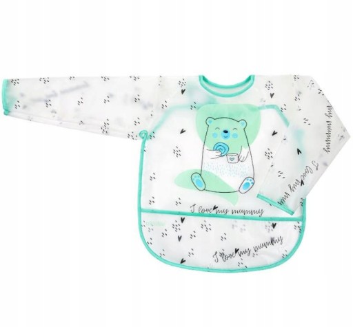 Fartuszek dziecięcy z rękawkami skutecznie ochroni ubranka Twojego dziecka przed zabrudzeniem w trakcie jedzenia i podczas zabaw. Wykonany z lekkiego, miękkiego oraz łatwo zmywalnego tworzywa EVA. Wyposażony w dużą kieszeń, która zatrzymuje resztki pokarmu. Posiada także wygodne zapięcie na rzep. Łatwy do utrzymania w czystości. Wystarczy zaraz po jedzeniu umyć śliniaczek w ciepłej wodzie z mydłem dla dzieci.