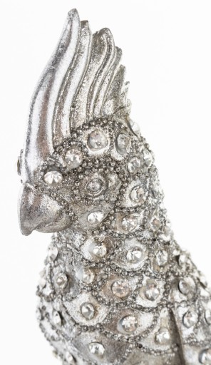 Dekoracja salonu: srebrny, cyrkonie, figurka papuga, na stojaku