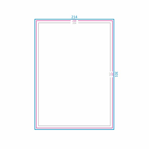 * Poniżej przedstawiamy makietę dla formatu A3 oraz A4 ze wskazanymi liniami charakteryzującymi: