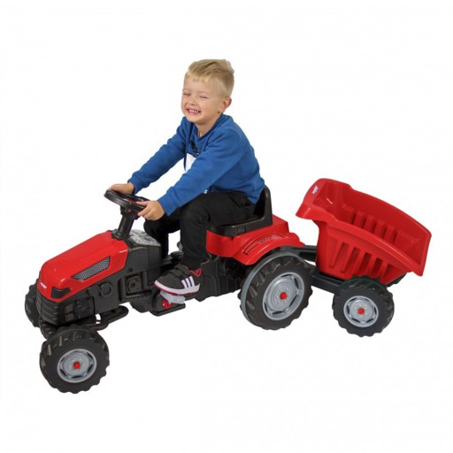 Traktor na pedały MAX z przyczepą w kolorze czerwonym to idealna zabawka do rozpoczęcia przygody z pojazdami na pedały.