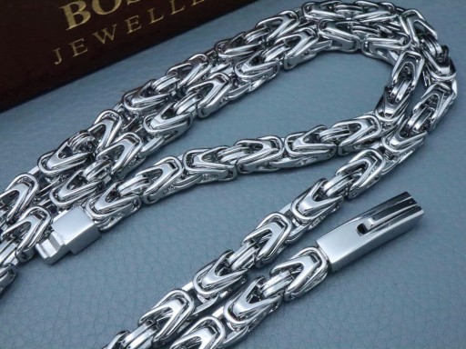 Łańcuch jest idealnie wypolerowany przez co świetnie się prezentuje. Posiada bardzo solidne zapięcie Z DODATKOWYM ZABEZPIECZENIEM i możliwość skrócenia.