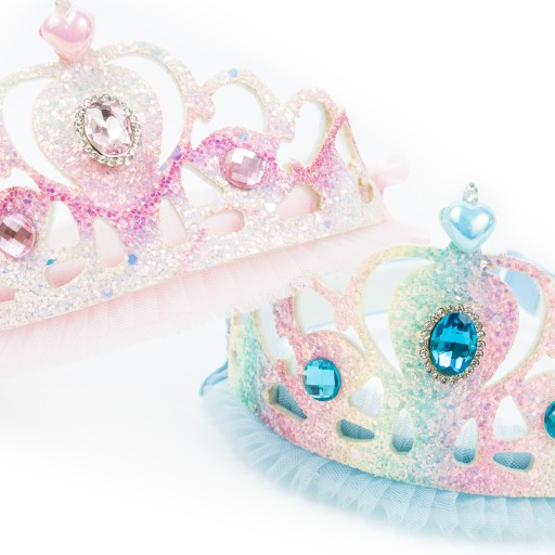 MIENIĄCĄ SIĘ KORONA Z KAMYKAMI - IDEALNA DLA MAŁEJ KSIĘŻNICZKI - PIĘKNIE ZDOBIONA TIULEM