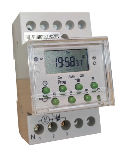 Polski programator jest urządzeniem, które automatycznie załącza i wyłącza zasilnie elektryczne w wyznaczonym czasie ( o ustawionej godzinie i minucie) do sterowanego urządzenia - obwodu. Programowanie sterownika jest z dokładnością do 1 min. Do dyspozycji mamy 18 rozkazów zał./wył.