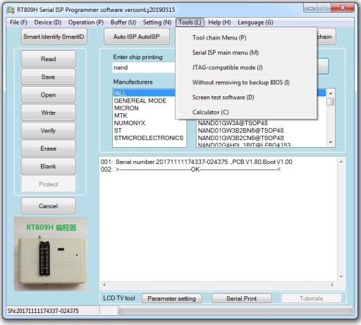 RT-809H - To uniwersalny, popularny, szybki i wielofunkcyjny mikroprocesorowy programator mikrokontrolerów, pamięci EPROM, EEPROM i Flash (zarówno typu NOR jak i NAND) MCP, EMMC, EMCP i in.