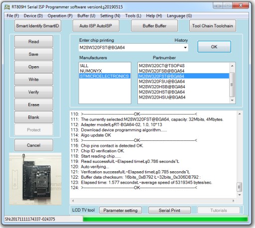 - Wyprowadzenia: BGA 64 -pin (EBGA64) --> PDIP 48+10 -pin dedykowane tylko dla programatora RT-809H