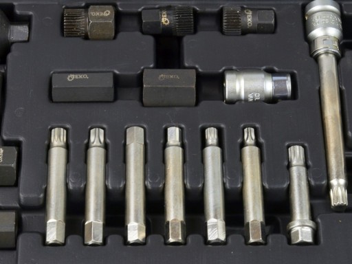 Klucze umożliwiają jednoczesne odkręcanie śruby mocującej koło pasowe (za pomocą odpowiedniego bitu) oraz przytrzymana koła ze sprzęgłem (za pomocą specjalistycznej nasadki).