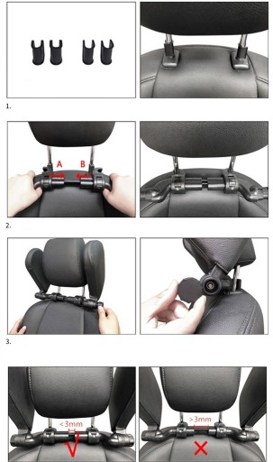 Trzeba zwrócić uwagę, po zamontowaniu środkowa odległość między lewym i prawym wspornikiem zagłówka nie powinna być większa niż 3 cm. jeśli przekracza 3 cm, wyreguluj haczyk wspornika na obu końcach !
