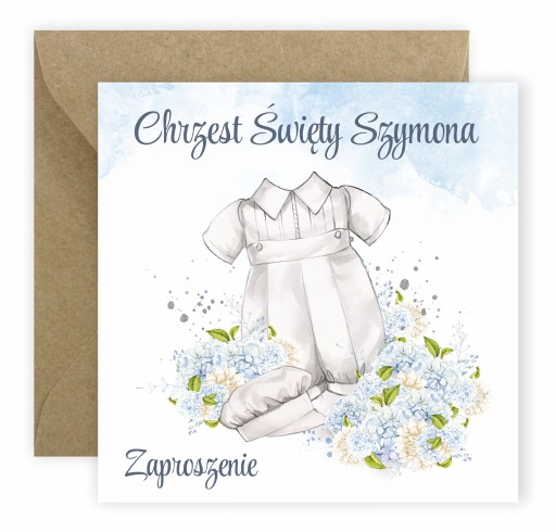 (Prosimy aby podawać gotowe informacje do wpisania. Prosimy aby wiadomość wyglądała mniej więcej w ten sposób: "Przód: Chrzest Szymonka, w środku: Szymon Nowak..." proszę wpisywać według własnego uznania tak jak ma się znaleźć na zaproszeniach. Edycji podlega jedynie imię dziecka pozostały tekst jest nieedytowalny.)