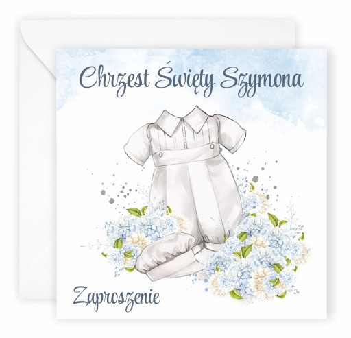 (Prosimy aby podawać gotowe informacje do wpisania. Prosimy aby wiadomość wyglądała mniej więcej w ten sposób: "Przód: Chrzest Szymonka, w środku: Szymon Nowak..." proszę wpisywać według własnego uznania tak jak ma się znaleźć na zaproszeniach. Edycji podlega jedynie imię dziecka pozostały tekst jest nieedytowalny.)