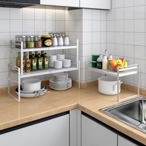 Regulowana półka do przechowywania, metalowa półka kuchenna, półka do przechowywania w kuchence mikrofalowej 20x24cm, Regulacja wysokości 34-54cm,Biały