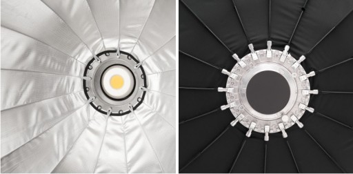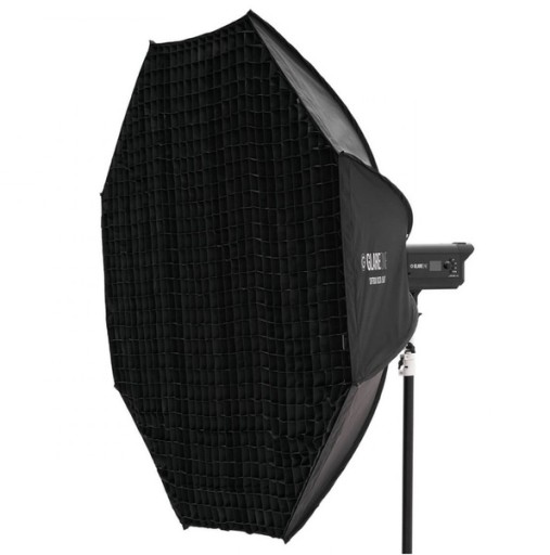 Płytki softbox oktagonalny o bardzo dużej średnicy wyposażony w podwójny dyfuzor, mechanizm szybkiego rozkładania Easy Fold II oraz pokrowiec.