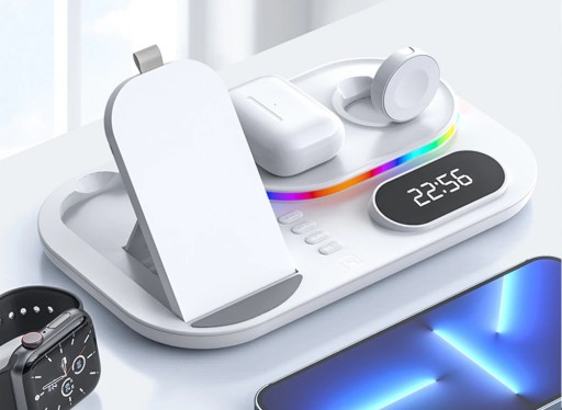 4w1 Ładowarka Bezprzewodowa Indukcyjna 30W Zegar