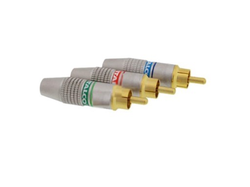 Komplet wysokiej jakości 3 wtyków RCA CHINCH COMPONENT przeznaczonych do montażu, lutowania na przewodzie, kablu koncentrycznym o maksymalnej średnicy 6mm (w komplecie znajdują się wtyki w 3 różnych kolorach oznaczeń- niebieskim, czerwonym oraz zielonym RGB co odpowiada oznaczeniu kolorystycznemu przewodów RCA COMPONENT).