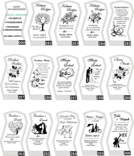 Poniższe wzory mają charakter poglądowy. Grawer ma jasny kolor - biały/mleczny (NIE jest czarny) . Zdjęcie rzeczywistego graweru na zdjęciu powyżej.