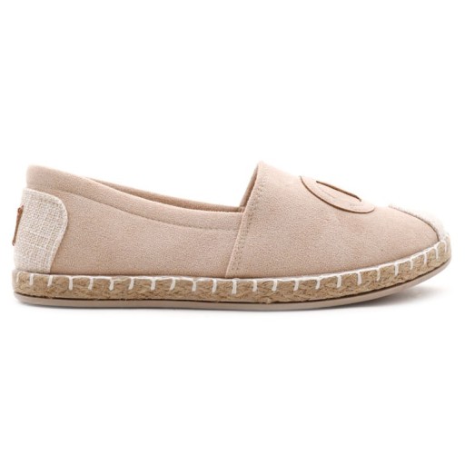 Espadryle damskie na płaskiej podeszwie. Czubek noska oraz boki ozdobiona plecionka z juty. Model wsuwany, wykonany z ekozamszu. Wyposażone w miękką wkładke- ekoskóra. Idealne na nadchodzącą porę roku.