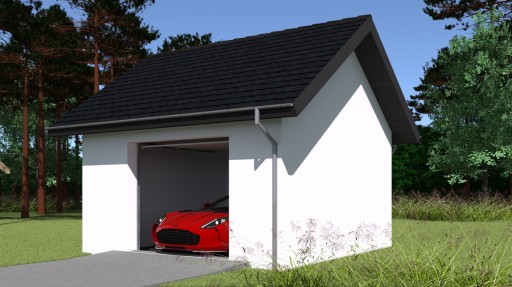 Przykryty dachem dwuspadowym budynek posiada prostą zwartą bryłę łatwą i tanią w budowie i użytkowaniu. Utrzymany w kolorystyce nowoczesnego designu z tradycyjnymi elementami widocznej więźby dachowej garaż z pewnością wpasuje się do każdego rodzaju krajobrazu i zabudowy. Na frontowej ścianie garażu umieszczono jedną wygodną bramę garażową. Wnętrze stanowi jedno przestronne pomieszczenie będące stanowiskiem postojowym dla jednego auta. Stryszek nieużytkowy z dostępem poprzez rozkładane schody strychowe.