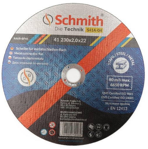 ДИСКИ РЕЖНЫЕ ПО МЕТАЛЛУ SCHMITH 230x2 ПРОЧНЫЕ С АЛМАЗНЫМИ ЧАСТЯМИ