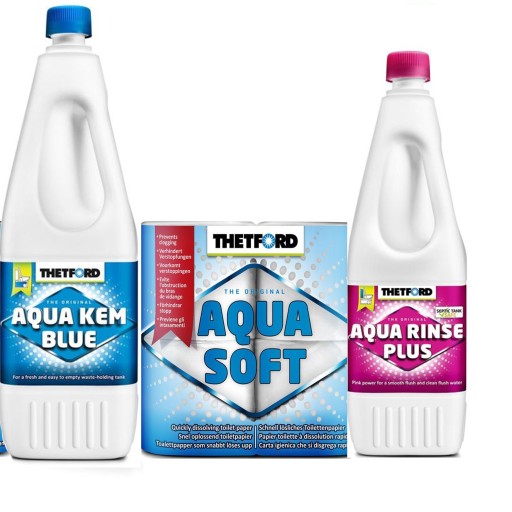 Zestaw płynów do toalet chemicznych Aqua Kem Blue 2L + Aqua Rinse Plus 1.5L marki Thetford + papier Thetford