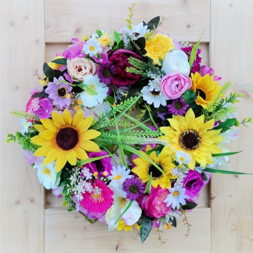 Prezentujemy Państwu własnoręcznie wykonane wianki dekoracyjne w bogatej gamie kolorystycznej, ozdabiane wysokiej jakości sztucznymi kwiatami, zielonymi gałązkami oraz akcesoriami florystycznymi.