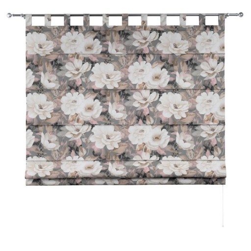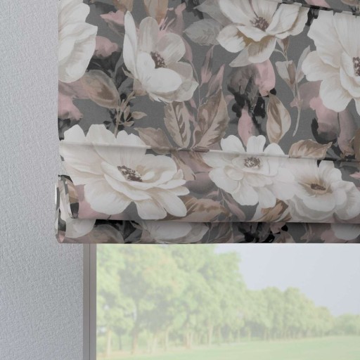 Roleta rzymska Verona, szer.130 x dł.170 cm, kremowe i różowe kwiaty na szarym tle , kolekcja Gardenia