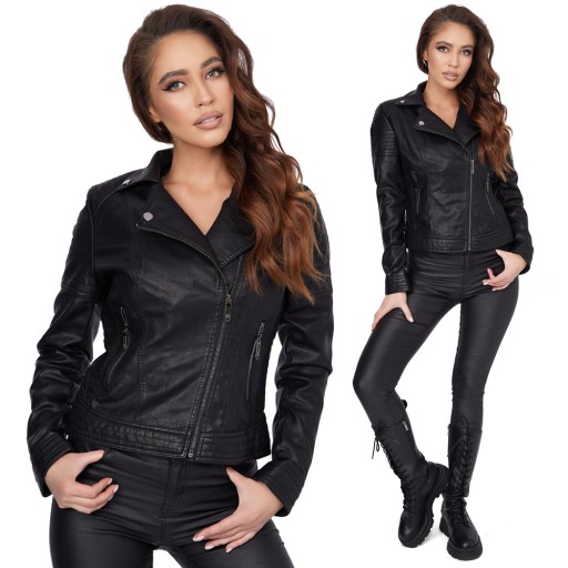 Klasyczna kurtka RAMONESKA. Model taliowany, sięgający do pasa. Uszyta z miękkiej ekoskóry doskonale imitującego naturalną skórę, półmatowa (nie świecąca i nie blado matowa). Materiał miękki (nie jest sztywny i nie piankowy). Zapinana jest na srebrny zamek . Po bokach dwie kieszonki zapinane na suwaki. Kurtka podszyta jest czarną podszewką. Można ją wykorzystać w każdej stylizacji, zarówno do klasycznych jeansów i białego t-shirtu na codzienne wyjścia, jak i do kobiecych sukienek dodając im rockowego charakteru. Jest to zdecydowany must have w każdej garderobie!
