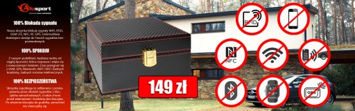 Blokowane sygnały: Klucze samochodowe (Keyless), GSM, RFID, Bluetooth, GPS, NFC oraz fale radiowe.