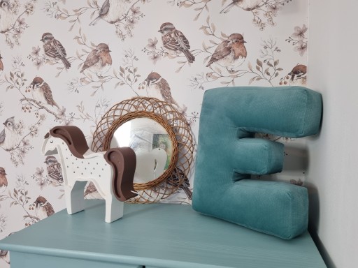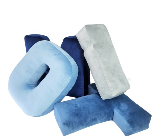 Fajny pomysł na stworzenie całego imienia dziecka z dużych poduszek-liter.