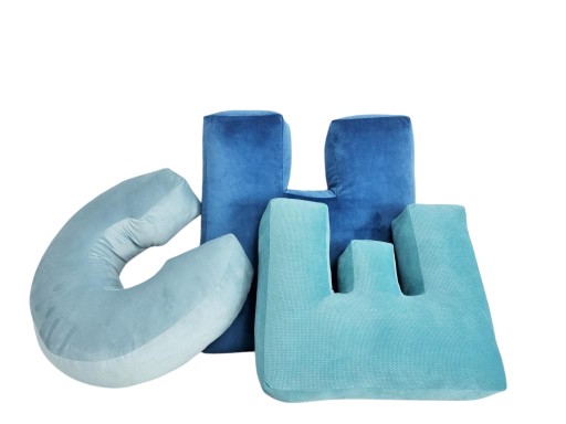 Tkanina - wysokiej jakości velvet lub welur (plusz), odporny na zabrudzenia - literki można prać ręcznie (unikając nadmiernego zamaczania puchu) w 30 stopniach.