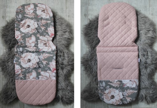 Wypełnienie - wkładka wypełniona owatą, o właściwościach antyalergicznych, nie chłonie wilgoci i jest przewiewna. Dzięki użyciu tego rodzaju wypełnienia wkładka jest mięciutka, można dopasować ją bez problemu do wózka i zapewnia komfort przy opieraniu się o nią.