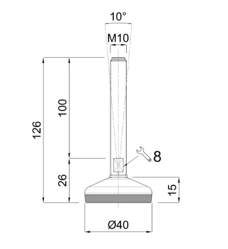 Stopa z wychyłem 10°, regulowana kluczem 8.