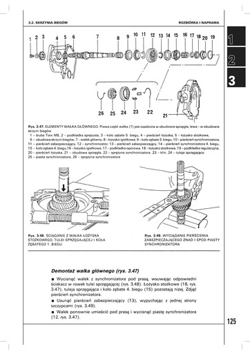 Opisy napraw uzupełniono danymi technicznymi i regulacyjnymi, tablicami momentów dokręcania połączeń oraz schematami elektrycznymi (ponad 40 stron tylko ze szczegółowymi schematami poszczególnych obwodów elektrycznych).