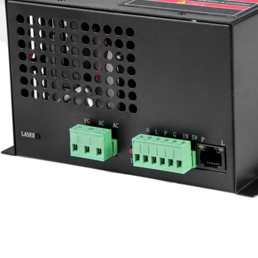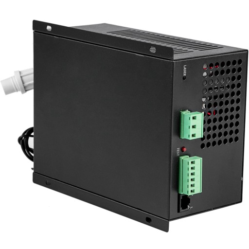 Zasilacz lasera CO2 jest niewielki, lekki, łatwy w obsłudze i ma dobre dopasowanie do rury laserowej, którą można bezpośrednio podłączyć do rury laserowej. Szybka reakcja, dobry efekt, wysoka wydajność, duża moc cięcia i może przedłużyć żywotność rury laserowej.