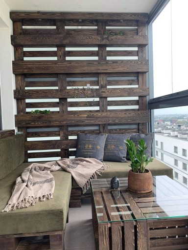 Meble wykonywane są z wyselekcjonowanego drewna sosnowego, stylizowane na palety.