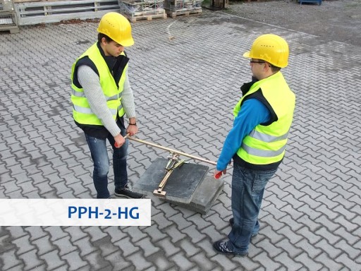 Ułatwia pracę za pomocą chwytaka PPH, ponieważ umożliwia obsługę narzędzia przez 2 osoby. Uchwyt jest przydatny przy większych i średnich materiałach brukarskich.