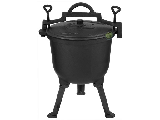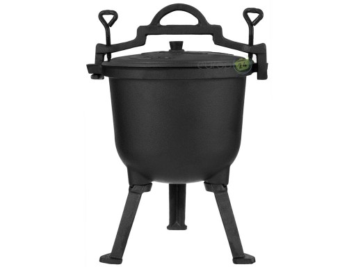 Kociołek myśliwski o pojemności 8 L, wykonany z wysokiej jakości żeliwa nada przyrządzanym w nim potrawom niepowtarzalny smak i aromat. Mocowana pokrywka kociołka może posłużyć jako uchwyt do przenoszenia.