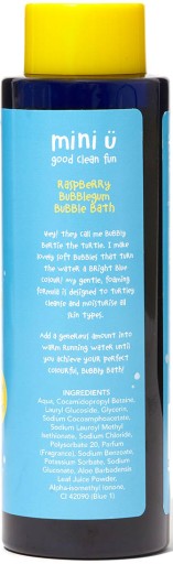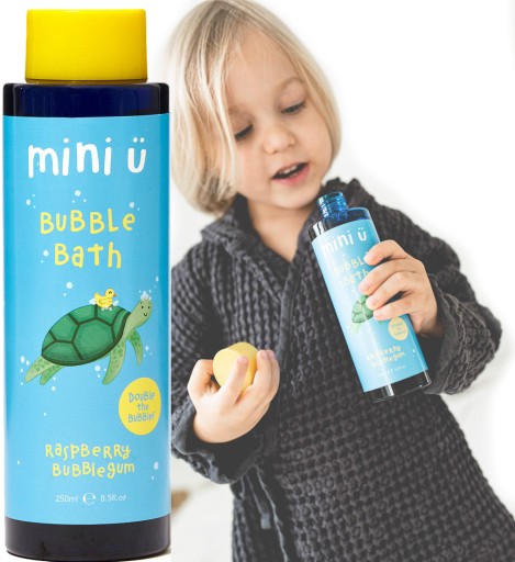 Bąbelkowy płyn do kąpieli Mini U dla dzieci i niemowląt zmienia kolor wody na niebieski i nadaje mnóstwo bąbelków. Ogromną frajdę da najmłodszym piana, przypominająca puszyste chmurki i niezwykły zapach malinowej gumy balonowej, a do tego wykonany jest z naturalnych i ultradelikatnych dla skóry składników. Z tym produktem już żadna kąpiel nie będzie nudna, a wanna zamieni się w miejsce doskonałej zabawy!