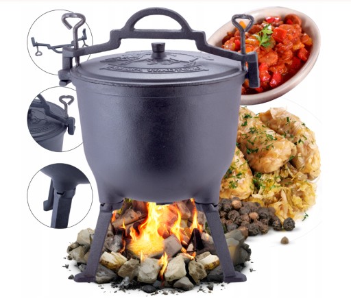 ⚙️ Funkcjonalny Design: Nasz kociołek został zaprojektowany z myślą o maksymalnej funkcjonalności. Dzięki poręcznemu uchwytowi może być zawieszony nad ogniskiem, umożliwiając wygodne gotowanie na świeżym powietrzu. Dodatkowo, odkręcane nóżki pozwalają na umieszczenie kociołka zarówno w kominku, jak i bezpośrednio w palenisku - elastyczność i wszechstronność w jednym!