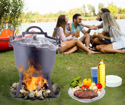 Zapewnij sobie niezrównaną jakość i wygodę podczas gotowania na ognisku dzięki naszemu oryginalnemu Kociołkowi Kamille! Wykonany z wysokiej jakości stopu żeliwa, nasz kociołek jest nie tylko niezwykle wytrzymały, ale także odporny na najwyższe temperatury, gwarantując bezpieczne i skuteczne przygotowanie Twoich ulubionych potraw.