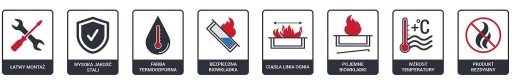 - Kształt paleniska: prostokątne z wycięciem w kształcie linii
