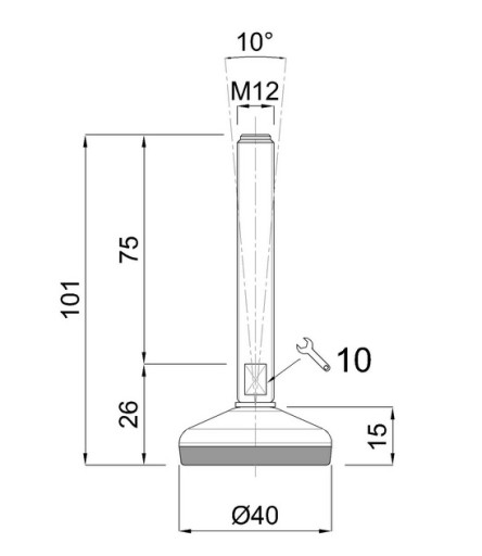 МИНИ-КАЧАЮЩАЯСЯ НОЖКА ДЛЯ СТАНКОВ РЕГУЛИРУЕМАЯ НОЖКА INOX Ø 40 M12x75 ЧЕРНАЯ