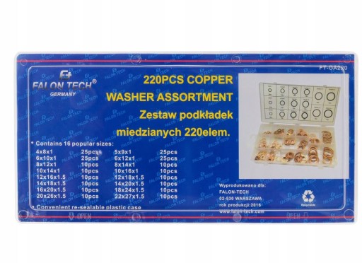 PODKŁADKI MIEDZIANE ZESTAW 220 ELEMENTÓW FT-OA220