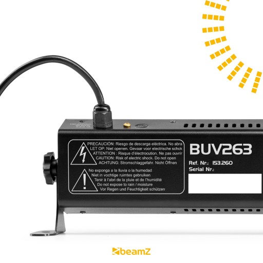 Listwa LED BUV 263UV jest częścią gamy BeamZ. Wszystkie produkty z tej serii zostały przemyślane i zaprojektowane przez i dla specjalistów od pokazów. To dlatego, że znamy wymagania zawodów związanych z animacją teatralną i świetlną, oferujemy Państwu produkty wysokiej jakości.