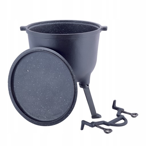🦶 Nóżki Odkręcane: Kociołek posiada odkręcane nóżki, co pozwala dostosować go do różnych źródeł ciepła, w tym ogniska czy kuchenki gazowej.