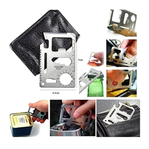 Bogaty zestaw survivalowy jest zamknięty w szczelne, wodoodporne etui zamykane na 4 zatrzaski. Jest możliwość zawieszenia etui również na szyi - na zewnętrznej części znajdują się 2 otwory przy których możemy zawiesić sznurek lub smycz. Futerał jest zgrabny i kompaktowy, dzięki czemu nie zabiera dużo miejsca. Jego elegancki charakter, czarny kolor i klasyczny wizerunek sprawia, że zestaw staję się również świetnym pomysłem na prezent!