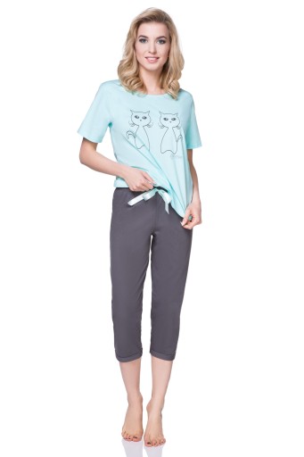 ЖЕНСКАЯ ПИЖАМА ИЗ ХЛОПКА CUBA CATS БИРЮЗОВАЯ S