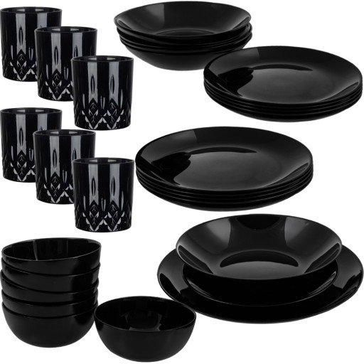 ОБЕДЕННЫЙ НАБОР ТАРЕЛКИ СТАКАНЫ ЧЕРНЫЕ Lumin 30 EL