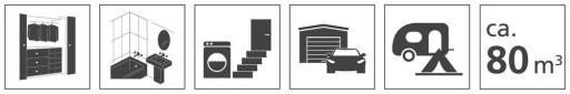 - 1 sztuka wystarczy na pomieszczenia o powierzchni aż do 80 m³,