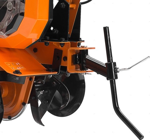 Glebogryzarka Daewoo DAT 2500E to urządzenie linii Master, charakteryzujące się wydajnym silnikiem elektrycznym Daewoo Eco Engine o mocy 2000 W, który pozwoli na wydajną pracę nawet na trudnym, gliniastym terenie. Napęd elektryczny sprawia, że maszyna świetnie sprawdzi się w szklarniach i foliach. Do przekopywania wierzchniej warstwy gleby maszyna wykorzystuje 16 kutych ostrzy o specjalnie profilowanym kształcie osadzonych na 4 gwiazdach roboczych. Boczne tarcze ochraniają rośliny poza obszarem roboczym przed obracającymi się nożami. Aby przenieść moment obrotowy z silnika na noże w glebogryzarce zastosowano przekładnię łańcuchową. Głębokość roboczą możemy regulować za pomocą solidnie przymocowanego do ramy urządzenia, wzmocnionego ogranicznika głębokości. Urządzenie zostało wyposażone także w ergonomiczny włącznik i zabezpieczenie przed przypadkowym uruchomieniem. Kierownicę można regulować w pionie. Transport glebogryzarki ułatwia koło transportowe o zwiększonej średnicy ułatwiające pokonywanie nierówności terenu, które w ciągu kilku sekund można przełączyć z trybu roboczego do trybu transportowego. Urządzenie posiada zabezpieczenie antykorozyjne.