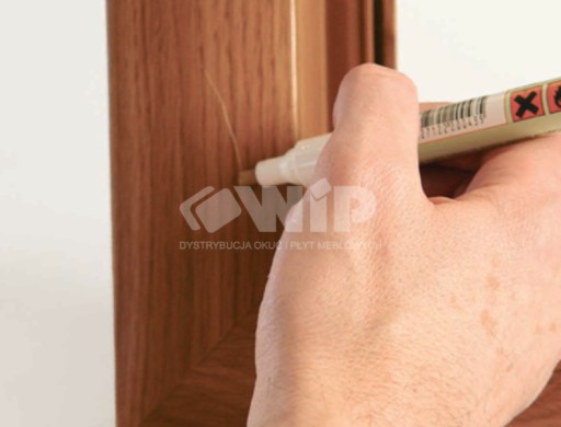 Pisak z farbą kryjącą, szybkoschnący, wodoodporny, nieścieralny, odporny na promienie UV. Idealny do barwienia krawędzi płyt laminowanych (wypełnia drobne wyszczerbienia). Stosowany do retuszu uszkodzeń na powierzchniach z drewna, laminatów, tworzyw sztucznych i aluminium. Do użytku wewnątrz i na zewnątrz. Końcówki wymienne C61 można zamawiać osobno. Produkt pozostawia półmatowy efekt.